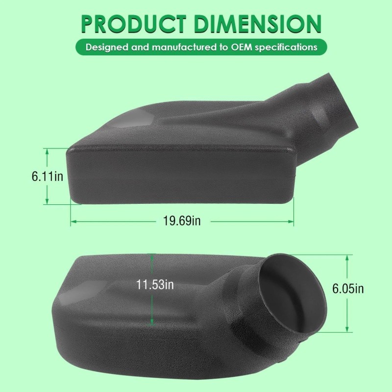 - 【SUPERIOR MATERIAL】: The 69861 deck boot chute is constructed from high-quality ABS plastic material with light-weight and durability, has good performance on heat and low temperature. The connector is built to withstand harsh outdoor conditions and high-impact forces, it is not easily damaged, cracked or blocked even if the adapter sucks in debris such as branches and stones.