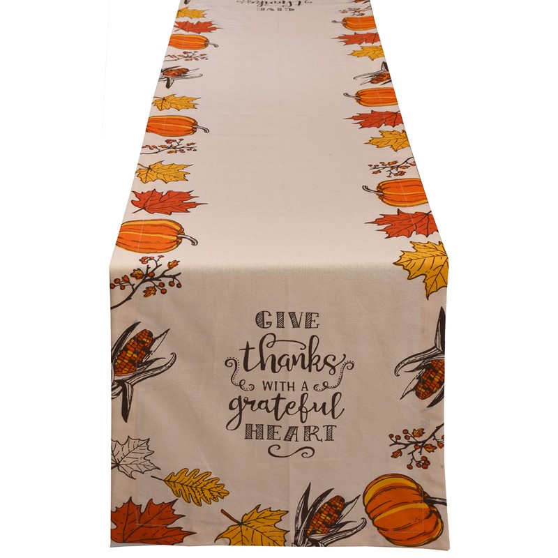 - BEAUTIFUL TABLE RUNNER — Yourtablecloth table linen is a stunning piece of décor that will breathe extra oomph & vigor into your plain table! With its beautiful Give Thanks design with bright attractive colors, our tablerunner is sure to spruce up any room and add just the right touch of glamour & drama!
