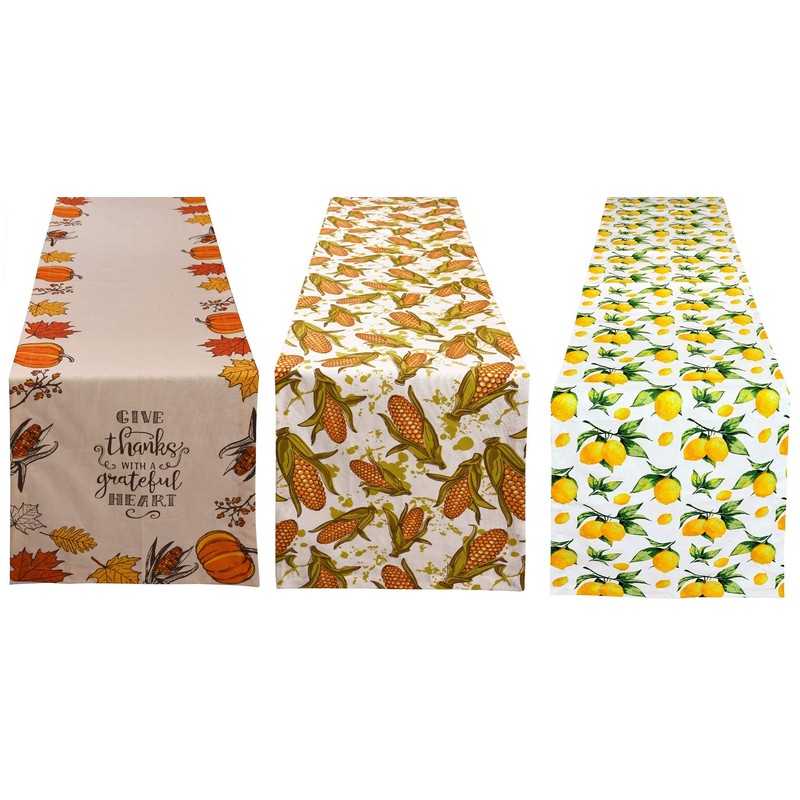 - PREMIUM GIVE THANKS TABLE RUNNER — Made with 100 % superior grade cotton, our Fall, Holiday and Thanksgiving table runner doesn't wear or tear easily, and features a strong topstitching to avoid fraying & loose ends, while its bright prints will not fade even after multiple washes, giving you many years of use!