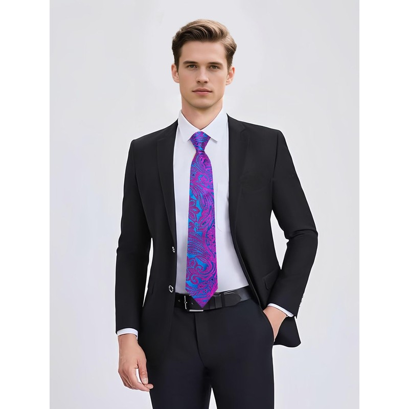 - [Purchase Contains]:Paisley Tie * 1 + Pocket Square * 1+Cufflinks*2+Lapel Pin*1 + Tie Clip * 1+Gift box*1, Which is packed in a beautiful black gift box. Fashion paisley tie can make you more unique and eye-catching,It's ideal gift for Father/ Husband/ Son/ Boyfriend on Christmas, Valentine's Day, Thanksgiving, New Year, Father's Day, Halloween and other important days