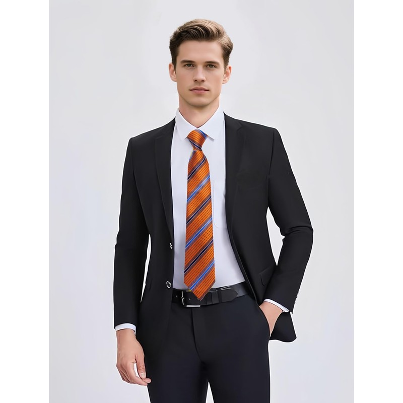 - Silk Material:orange blue tie is woven with high-quality silk, Using 2400 stitches woven jacquard craft, soft to the touch, delicate pattern, the fabric is thick and textured. The high-density weaving craft is not easy to wrinkle and deform