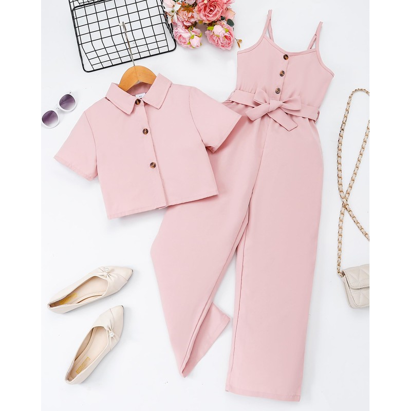 - Cute clothes design:This piece girls romper clothing set is all about effortless style and comfort,features halter V-neck design,button decor in chest,wide leg jumpsuit,paired with short sleeve shirts crop top.Keep cool by dressing halter romper in summer,matching short sleeve is another fresh style in spring.Simple yet classic tween girls trendy clothes.