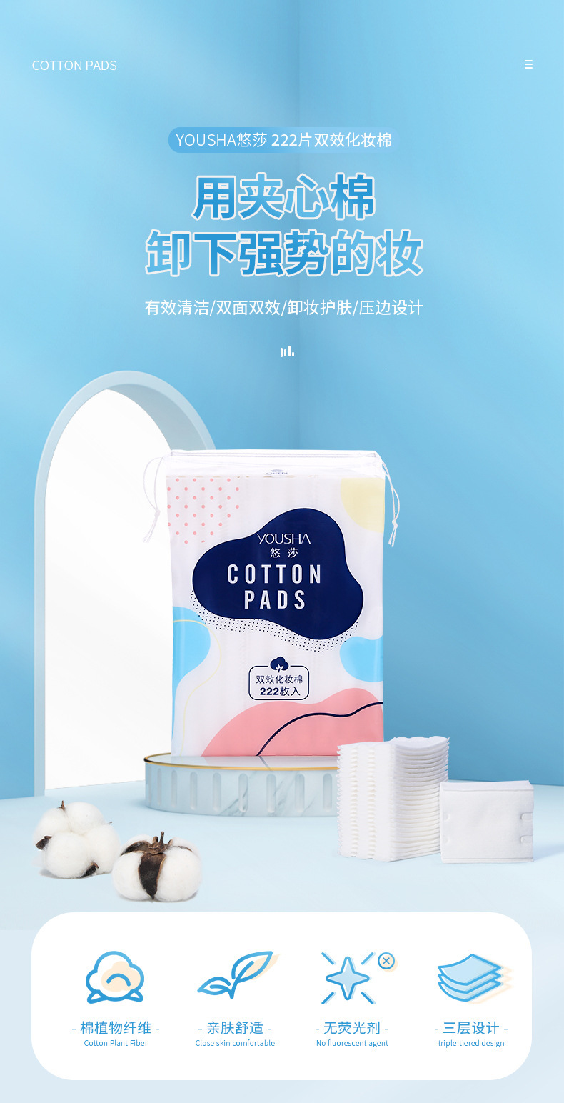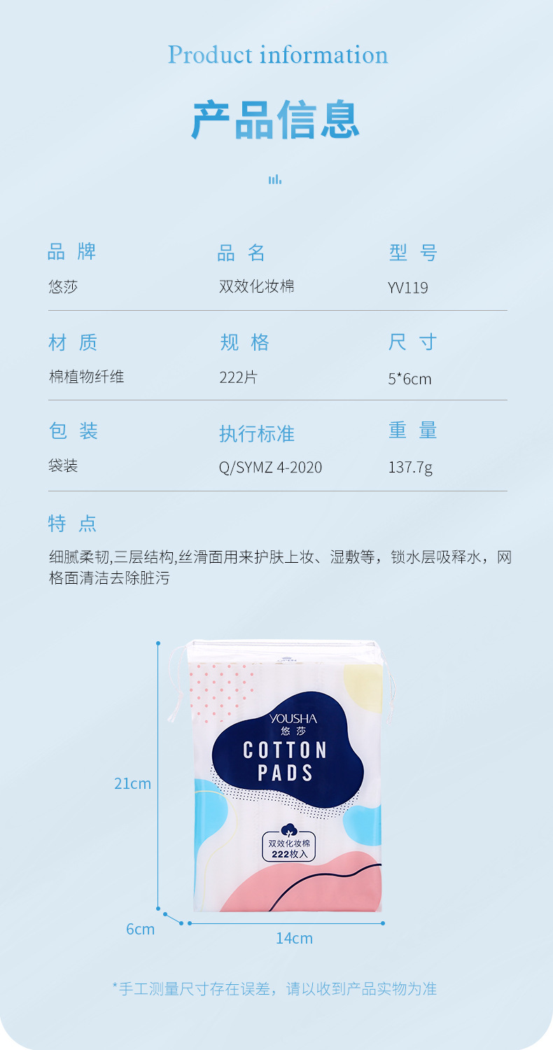 Yousha Stretchy Sandwich Cotton Pads, 222 Sheets, Double-Effect Stretch-Back One Size / 222 Sheets 10ea