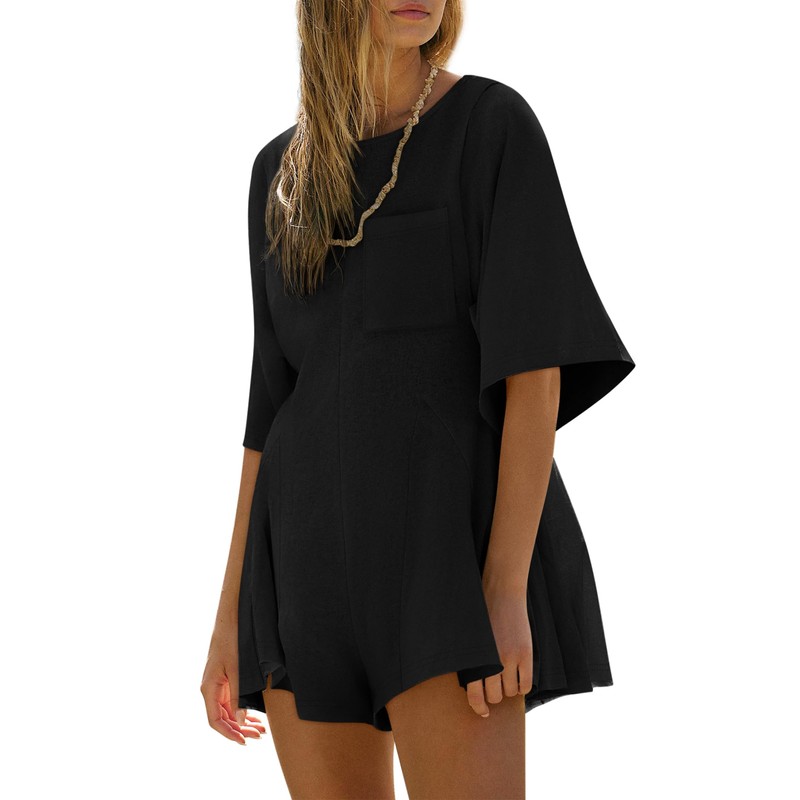 Yousify Womens Rompers for Summer 2025 Spring Outfits Casual Half Sleeve Jumpsuit Loose Shot Romper Dress with Pocket Black M