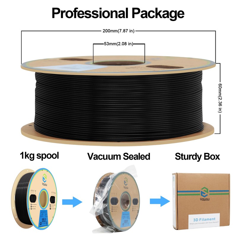 - 【Vacuumed Sealed Package】YOUSU PLA filament was dried and then vacuum packed in a zip-bag which keep your 3d printing filament in a good condition before printing.