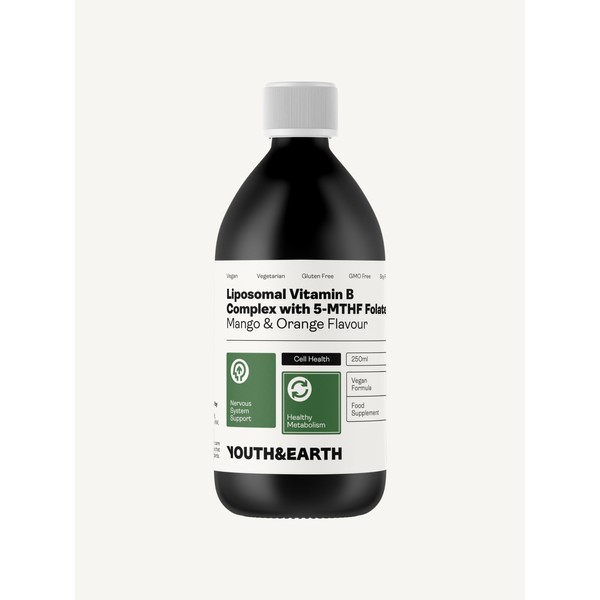 Youth & Earth Liposomal Vitamin B Complex with 5-MTHF Folate 250ml Mango and Orange Flavour
