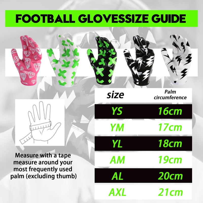 - Comfortable Fit: Featuring a snug yet comfortable fit, these football gloves offer flexibility and dexterity, allowing players to maintain agility and responsiveness. They're crafted to support young athletes in reaching their full potential on the field.