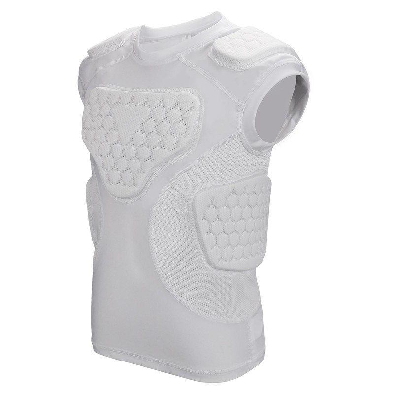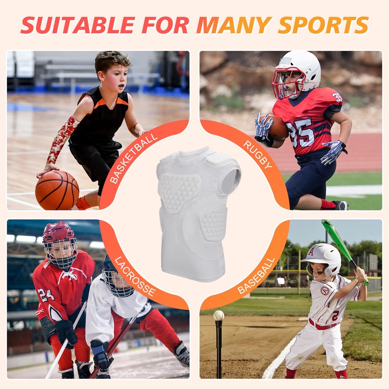 - 5-Pad 12mm Thickening Pads: Different other 10mm padded shirts, Our compression padded football shirt with ergonomic technologies and 12mm high-density EVA foam padding for protection during games, shielding your kids' sternum, heart, chest, ribs, shoulders, and collarbone from sudden impacts and minor injuries from balls and hard hits.