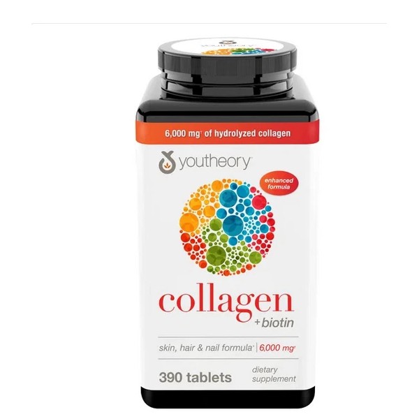 Youtheory Collagen + Biotin 390 Tablets Hair Skin Nails Joint Support