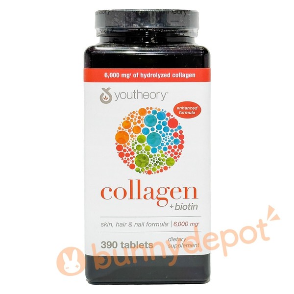 Youtheory Collagen Biotin 390 tablets Type 1,2,3 18 Amino Acids 6000 mg 09/25+