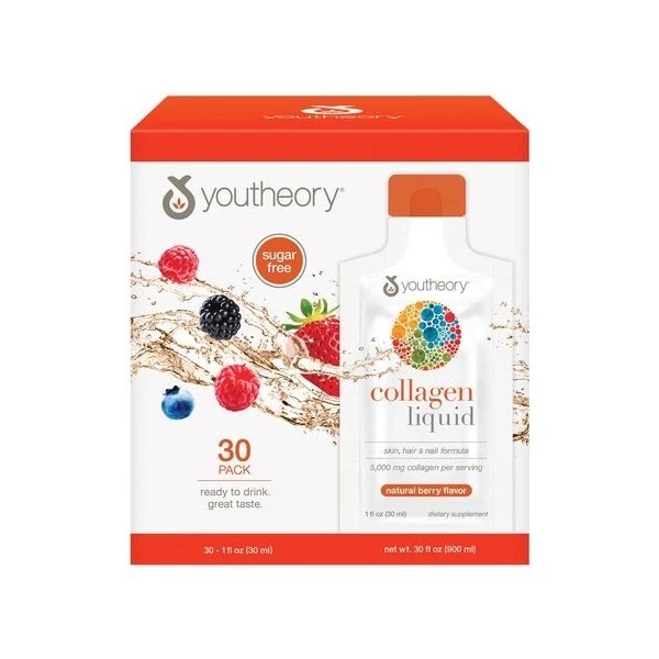 youtheory Collagen Liquid, Berry Flavor, 30 Packets