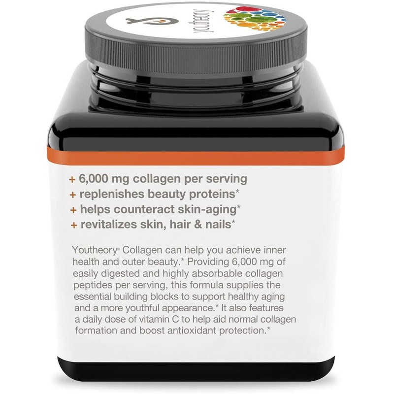 - COLLAGEN PEPTIDES WITH VITAMIN C: Collagen diminishes with age. Youtheory Collagen Advanced with Vitamin C helps replenish this vital protein to fight the effects of aging by revitalizing skin, hair, nails, tendons and ligaments.
