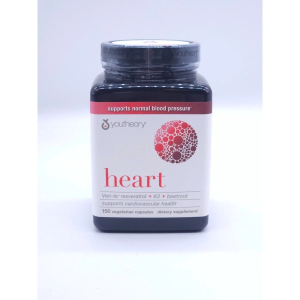 Youtheory® Heart is a complete health supplement for your heart with a blend of clinically studied Veri-te™ Resveratrol, K2VITAL® Vitamin K, and beetroot - along with essential nutrients folate and magnesium. The result is a formula that supports normal blood pressure and circulation, while helping to reduce oxidative stress and cellular damage*