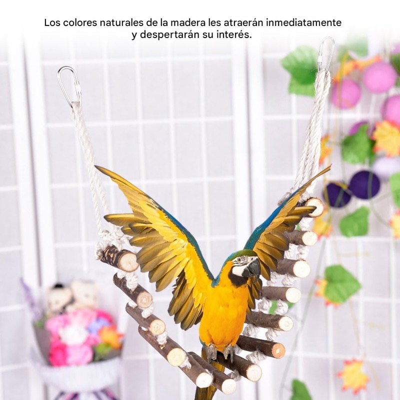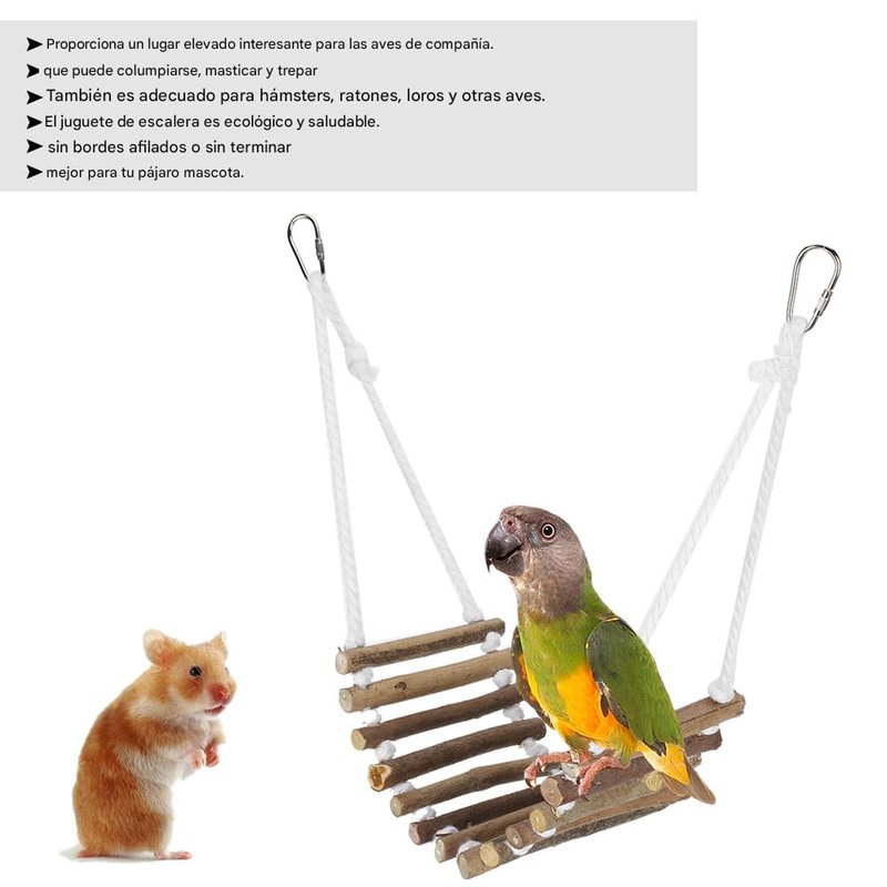 - Los de escalera son ecológicos y saludables, sin bordes afilados o sin procesar, y son más adecuados para su mascota. El puente de escalera para pájaros es un buen que permite a los pájaros columpiarse, masticar y trepar.