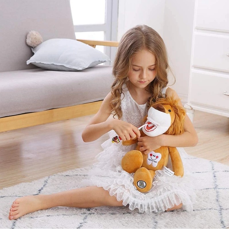 - 🐘 Use this plush LION visual aid to teach toddlers to teens with a unique dental puppet featuring teeth. Demonstrate and motivate your kids how to brush to brush and floss their teeth every day.