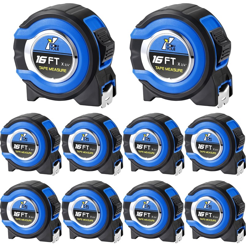 Youyole 10 Pack Tape Measure with Fractions 1/8 Steel Measuring Tape Retractable Easy Read Measurement Tape Steel Power Tape Blade Tape Measure (16 ft x 3/4 in)