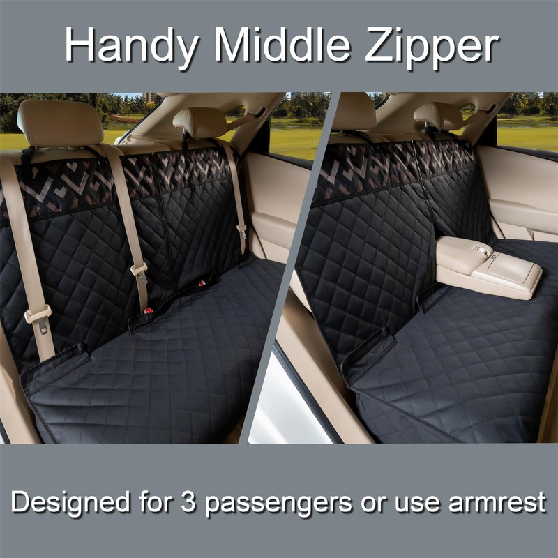 - Handy Middle Zipper: Unzip the middle zippers to use middle seat belt for 3 passengers in the backseat or use armrest to relax. 4 openings to access safety belts and car seat LATCH hook-ups. The safety is the very important thing to concern