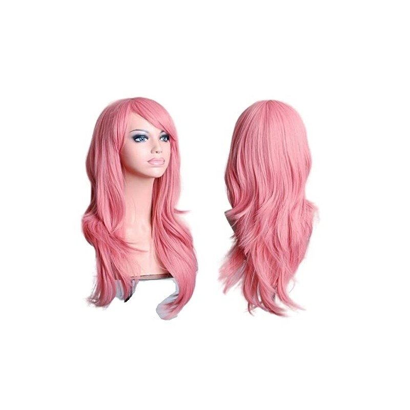 YOVEKAT 27inch Long Curly Cosplay Costume Party Hair Wig Full Hair Wavy Wig Daily (Pink)