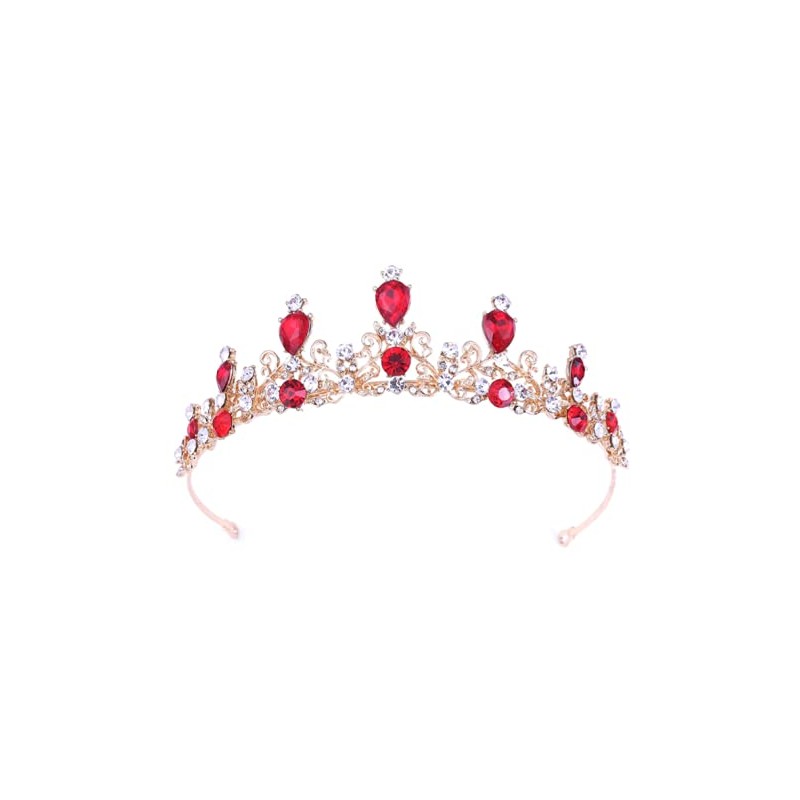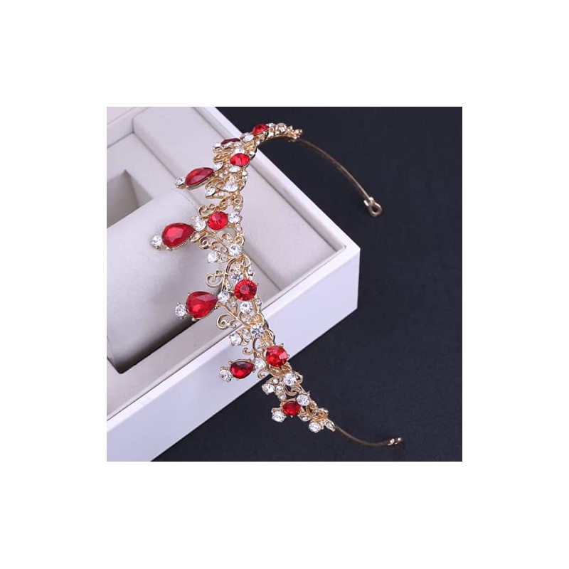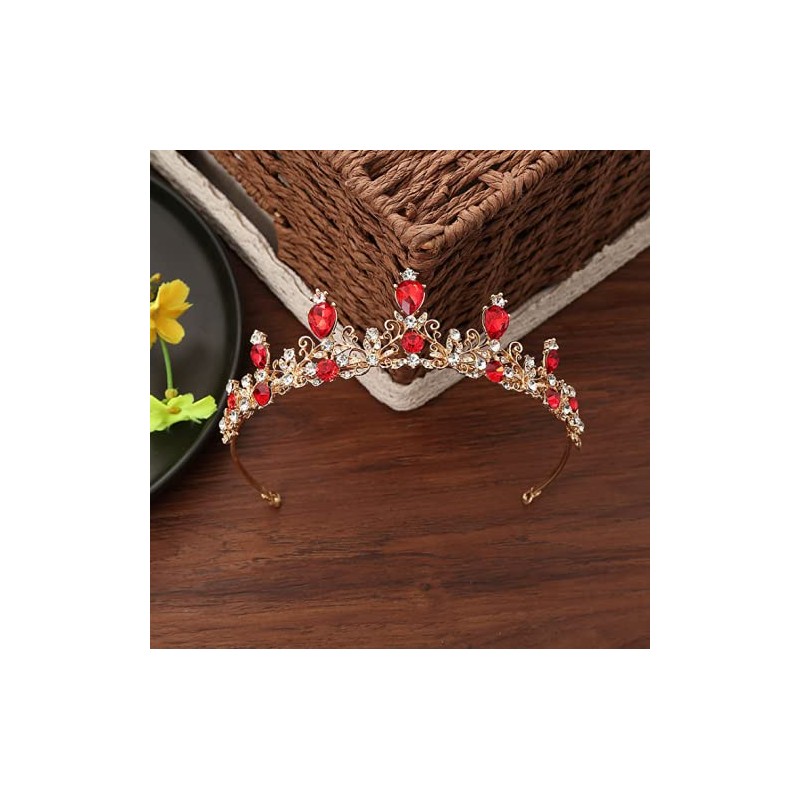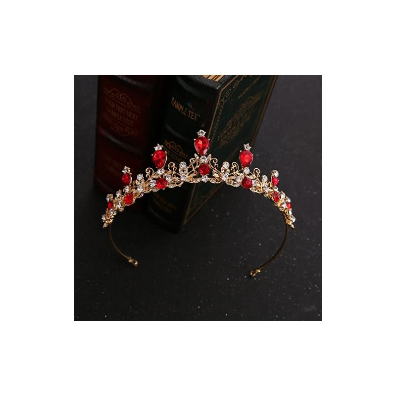 YOVEKAT Rhinestone Princess Tiara Headband Bridal Wedding Party Crown Headband (Red)