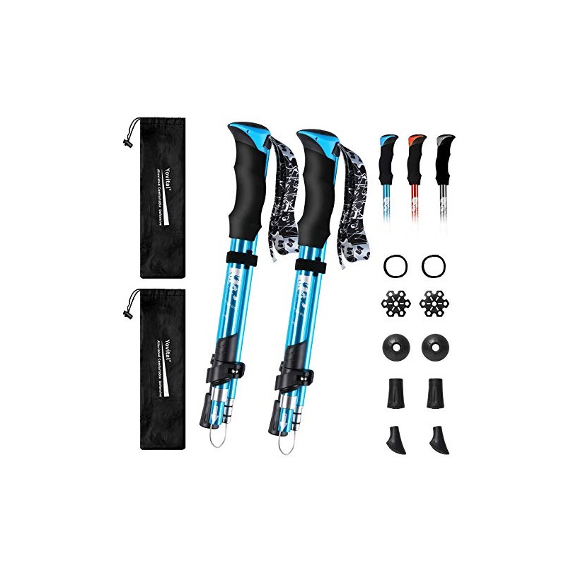 - LIGHTER AND STRONGER:YOVITAL Trekking Poles'tough aluminum can withstand better pressure and impact than carbon fiber,hiking or climbing withstand more weight, and trekking poles are light enough for the outdoors, each trekking pole weighs only 9 oz, allowing you to move quicker and faster while exerting less energy.