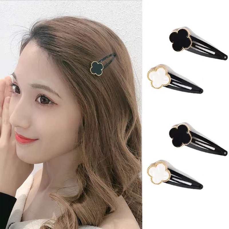 YOVOY 4 Pcs Bangs Clips, Cute, Flower Hairpin, Stylish, Bangs Pin, Hair Clip, Hair Ornament, Hair Accessories, Non-Traced, Black, White (bb Clipp)