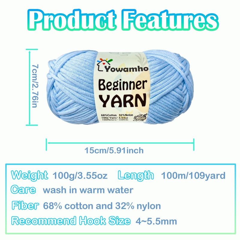 - đ§¶ăWorsted Yarn for Knittingă: The crochet yarn is cotton-nylon blend yarn, 68% cotton and 32% nylon. Each roll is about 100g(3.55oz)in weight, 109yards(100m) in length. Yarn won't split, fray, or snag. It is perfect for a variety of knitting, crocheting, and crafting projects. Easy to care for: Wash them in warm water only. Do not iron or machine wash.