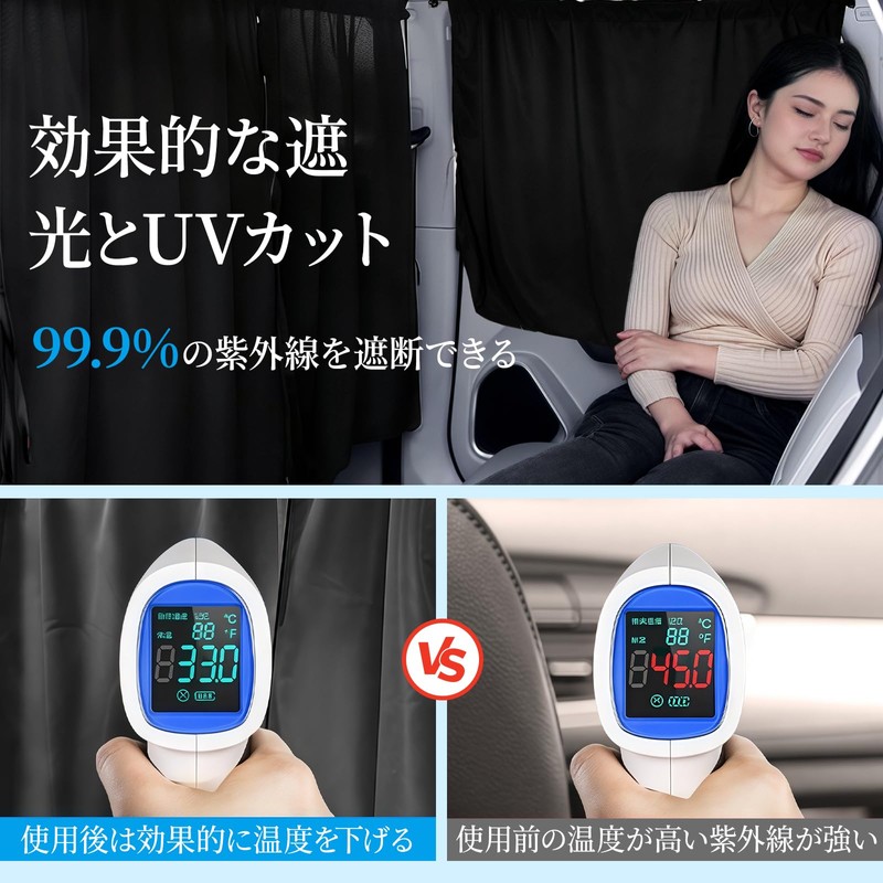 - ☀️【全方位プライバシー保护】优质遮光素材でできたこのカーテンは、車外からの視線や光线を効果的に遮断します。車内での着替えや授乳など各种プライバシーを守るシーンに対応し、自由に动き回ったり、快适に休んだりできます。旅行やキャンプでプライベートな時間を過ごすのに最適です。