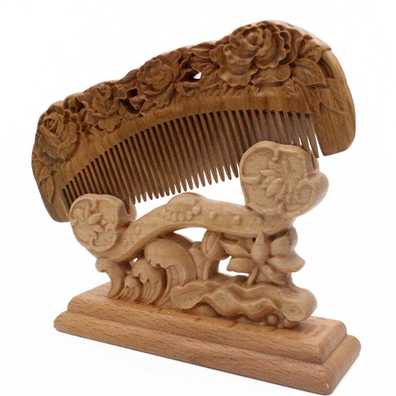 - Design Name:Romantic Rose. Pattern and design carved on both sides. Size:5.9" x 2.16"/15 x 5.5cm(L*W). Pack of 1 green sandalwood hair comb ( The display stand is not included ).