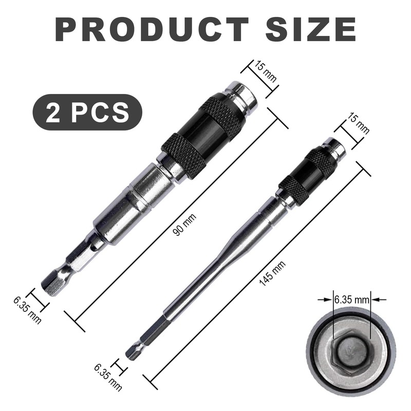 Made of high quality chrome vanadium steel, this bit holder is wear-resistant and rust-proof, which greatly extends its service life. With two different lengths of 90mm and 145mm and the ability to rotate the bit holder 20 degrees, you can easily drill inclined angles and perform your work in different conditions.