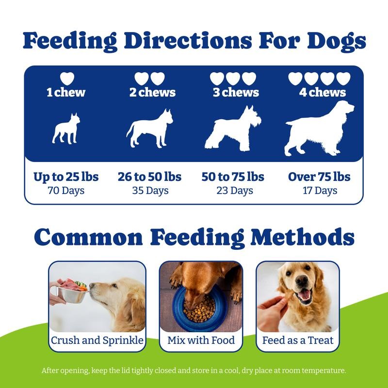 Each bottle contains 70 delicious duck & pear flavored chews, perfect for dogs of all sizes and life stages. Whether used daily or as part of a holistic wellness routine, these treats are a convenient and enjoyable way to maintain long-term protection and vitality.