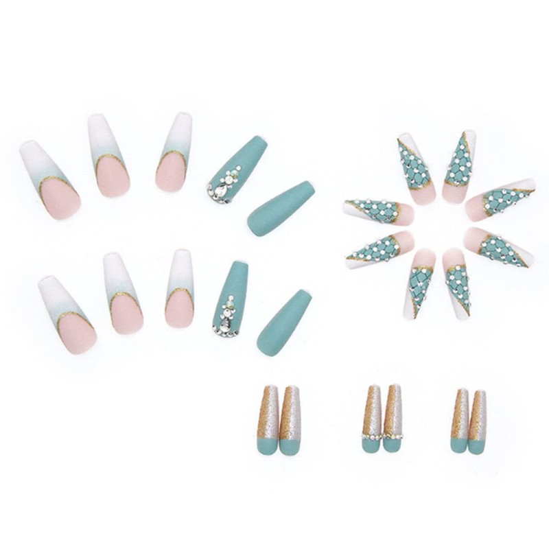 - 【Fashionable Outfits】Rhinestones Artificial press on nails art is very suitable for dinner parties, birthday parties, Halloween, Christmas, prom, weddings. It must be your essential accessory