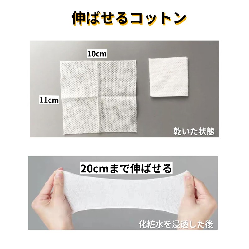 - Cotton for Lotion Packs: The cotton sheet can be stretched up to 7.9 inches (20 cm). Once the cotton is dampened with lotion, it can be applied to the entire face while gently pulling the cotton left and right