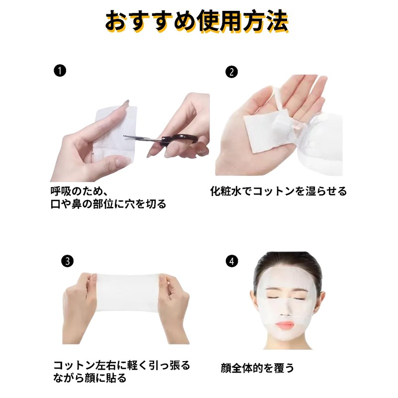 - (100% natural cotton on the skin-friendly) The pack sheet is made from natural cotton that has excellent water absorption and is completely gentle on the skin