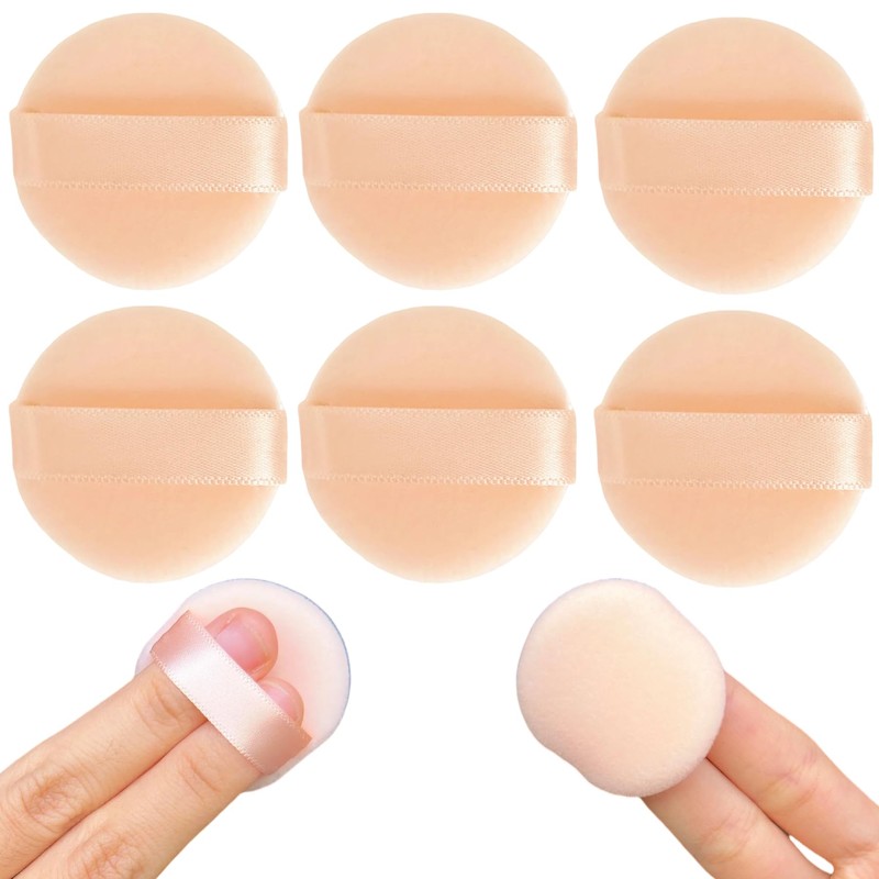 YOYOSOFT Powder Puff Mini Size, Diameter 1.6 inches (4 cm), 6 Pieces, Pressed Powder Puff Thickness 0.3 inches (7 mm), Round Thin, Smaller, Flocky Puff Replacement Puff Makeup, Cosmetic Puff Large