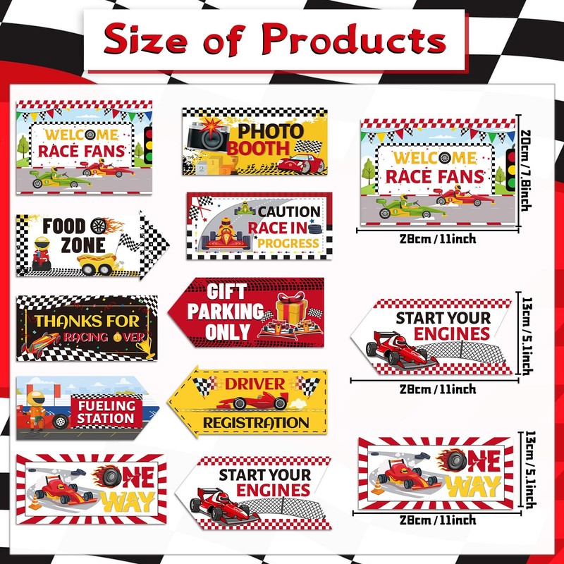- Application: These racing themed party direction sign decorations are not only suitable for racing style parties, but can also be used for racing birthday party decorations, boys birthday party decorations, hot-blooded theme parties, festival celebrations, etc.
