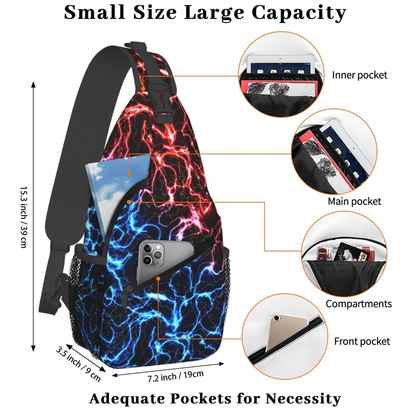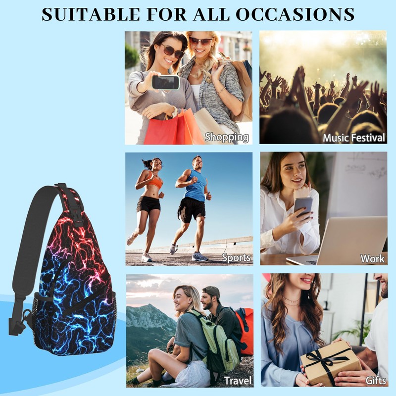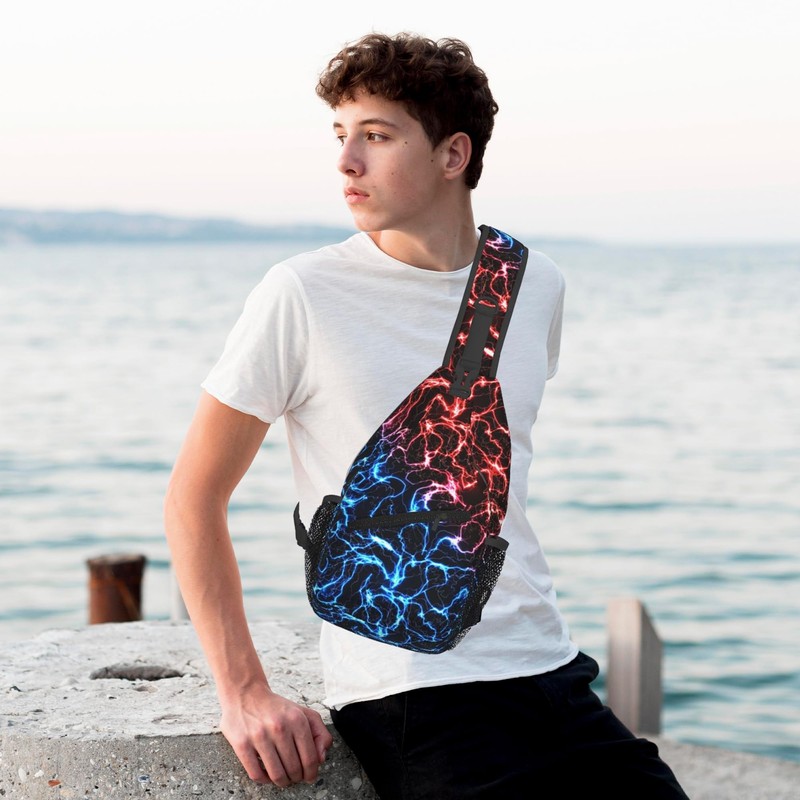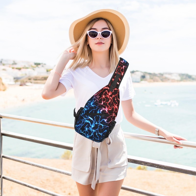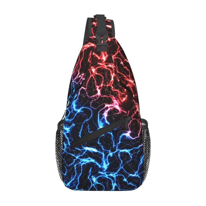 YOZIRIBO Sling Bag for Women Men, Crossbody Sling Backpack Chest Daypack Cross Body Bag Shoulder Bag (Red Blue Lightning)