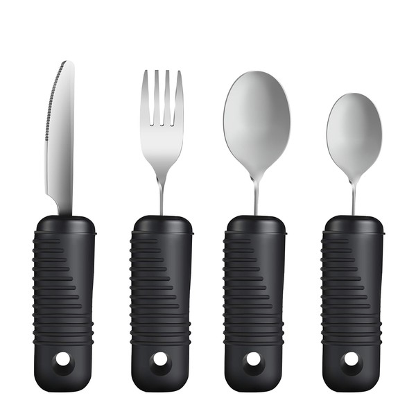 - Utensils feature a wide grip handle design; intended to help individuals with arthritis, hand tremors, Parkinson's, or poor grip strength