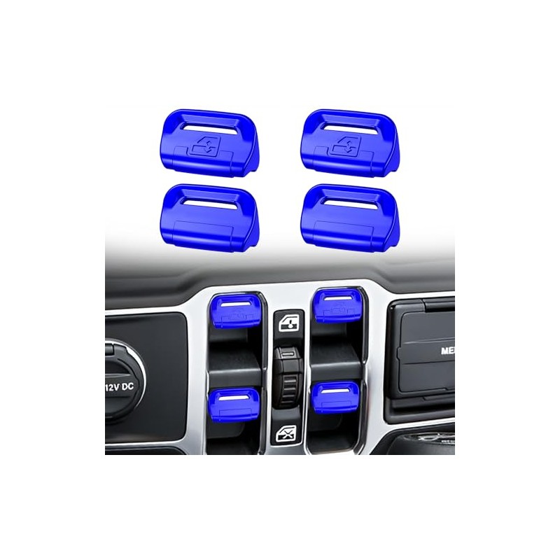 YPHUIKI YPHUIKI Upgraded Window Switch Button Covers for Jeep Wrangler JL JLU 2018-2024 2025 & Gladiator JT 2020 2021 2022 2023 2024 2025 for Jeep Wrangler 4xe Accessories, Icon Blue, 4pcs