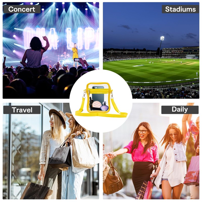 Yphzmtz Transparent Crossbody Shoulder Bag, Statium Tested Carry Bag with Removable Adjustable Strap, Clear Waterproof Bag for Work, Sports, Games, Travel, Concerts, yellow