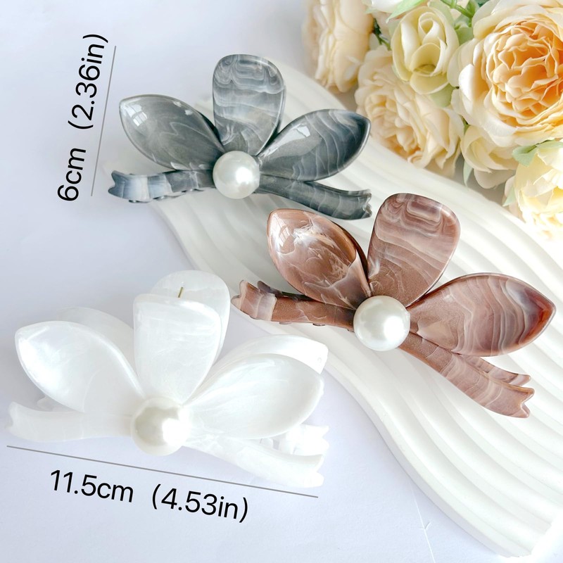 Ypkia 3 Stück Blumen Kunstperlen Haarklammer Groß Set Haarspangen Damen Elegante Haarclips für Frauen Dickes Dünnes Haarschmuck