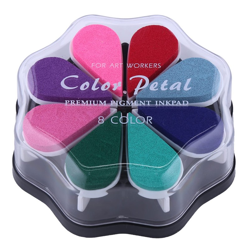 YPSelected 8 Assorted Multi Colours Waterdrop Shaped Craft Rubber Stamps Ink Pads for Paper Wood Fabric (Set 1003)