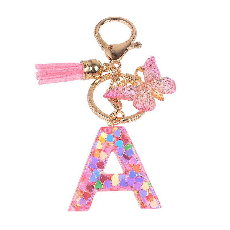 YPYMOD Lnitialen Keyring Tassel Butterfly Sequins Love Letter Keyring, Pink, Pink