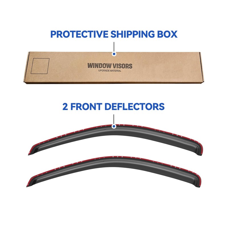 - Easy InstallationIn-Channel Style. No drilling or special hardwares required. Test fit the visors first to make sure it's the right model before you tape them on.[NOTE: Don't wash your car 24 hours after installation.]