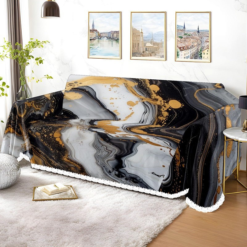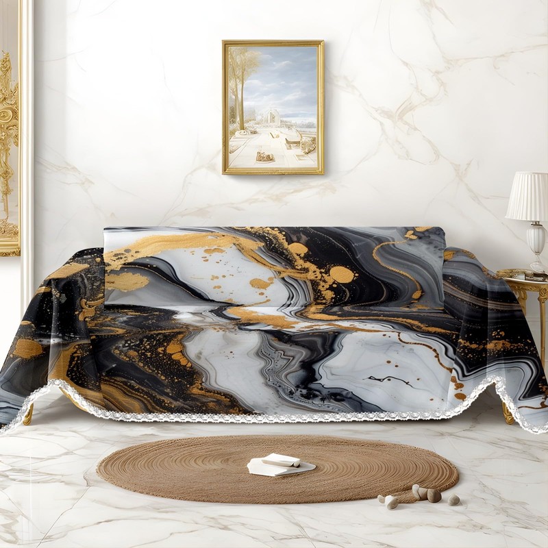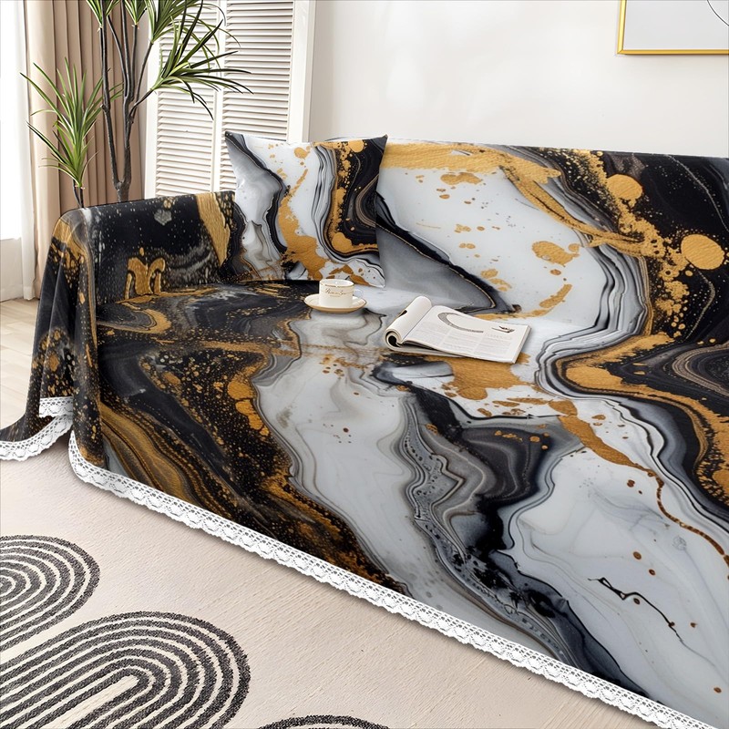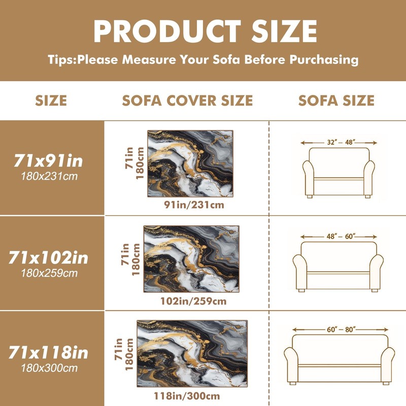 YQJcSai YQJcSai Black Gold Marbled Couch Cover for 3 Cushion Sofa Covers for Pet Dogs Cats Washable