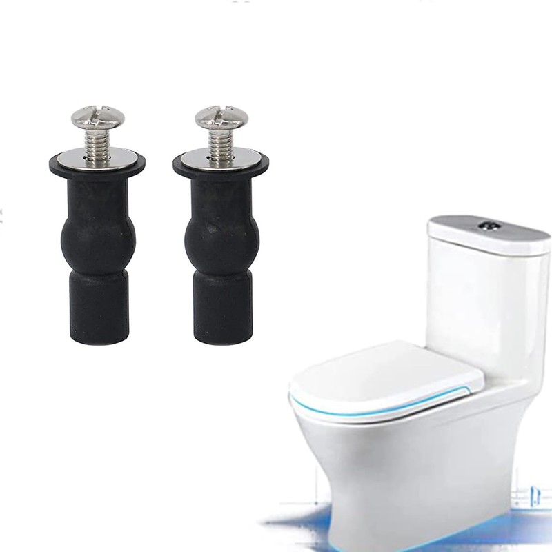 YQkangzhu 2Pcs Universal Toilet Seat Hinges Screws, Toilet Seat Top Fixing Expanding Rubber Nuts Screws, Toilet Seat Replacement Part Blind Hole Fitting, Toilet Seat Bolts Kit Compatible, Mount Device