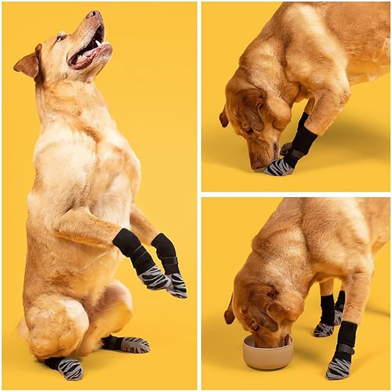 - Material: Our Dog Paw Protectors Are Crafted from a Blend of Soft, Breathable Cotton and Polyester, Ensuring a Snug Fit and Resistance to Dampness. Ideal for Preventing Slips on Hardwood Floors, They Provide Protection for Indoor Sofas and Mattresses. With a Elasticity Design at the Cuff, They're Easy to Slip on and Off
