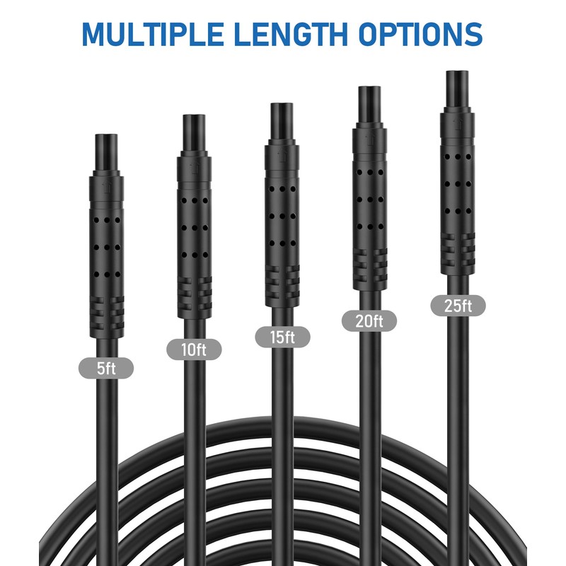- 【Multiple Length Options】This 4Pin mirror camera extension cable can be ordered in different lengths: 5ft. 10ft. 15ft. 20ft. 25ft. The shorter the cable, the more stable the signal. We suggest that you choose the most suitable length of cable.