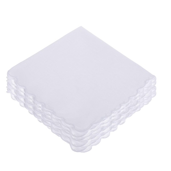 YQQYG Pack of 6 Handkerchiefs, 30 x 30 cm, White, Cotton Handkerchief with Scalloped Edge for Men and Women, Handkerchief, Handkerchief, Hand, White, M