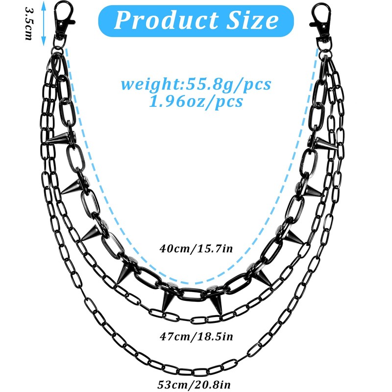 - Unique Design: This pant chain has three chains, which is layered. The combination of rivet chains is cool and fashionable. The collision of chains will make a crisp sound, but don't worry, it will not disturb people, but it can show your unique aesthetic and personality, and create a delicate and special personal style.