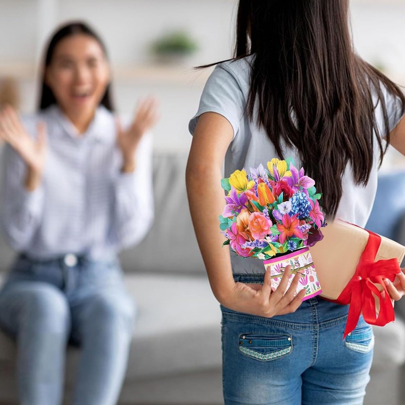 YQQZQ Pop Up Mother's Day Card,Paper Flower Bouquet Greeting Cards,Best Mom Cards,Mom's Birthday Cards with Note Card and Envelope for Women Wife Mom Friends Anniversary Mother's Day